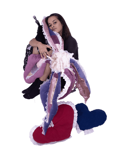 I am Zohra Capucine, a textile designer and upcycler. I trained in painting and printmaking at the Beaux-Arts de Brest (France) and in textile design at ENSAV La Cambre (Belgium). My practice focuses on the creation of eclectic knitwear and accessories and art objects.